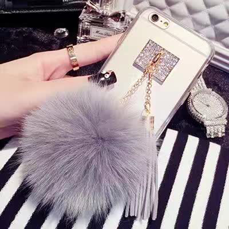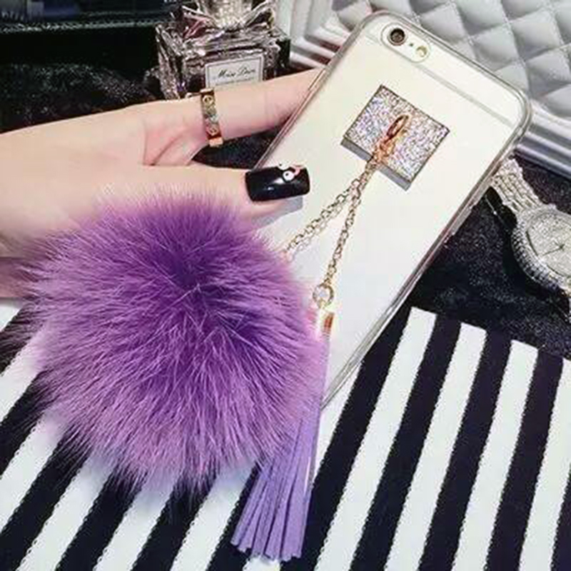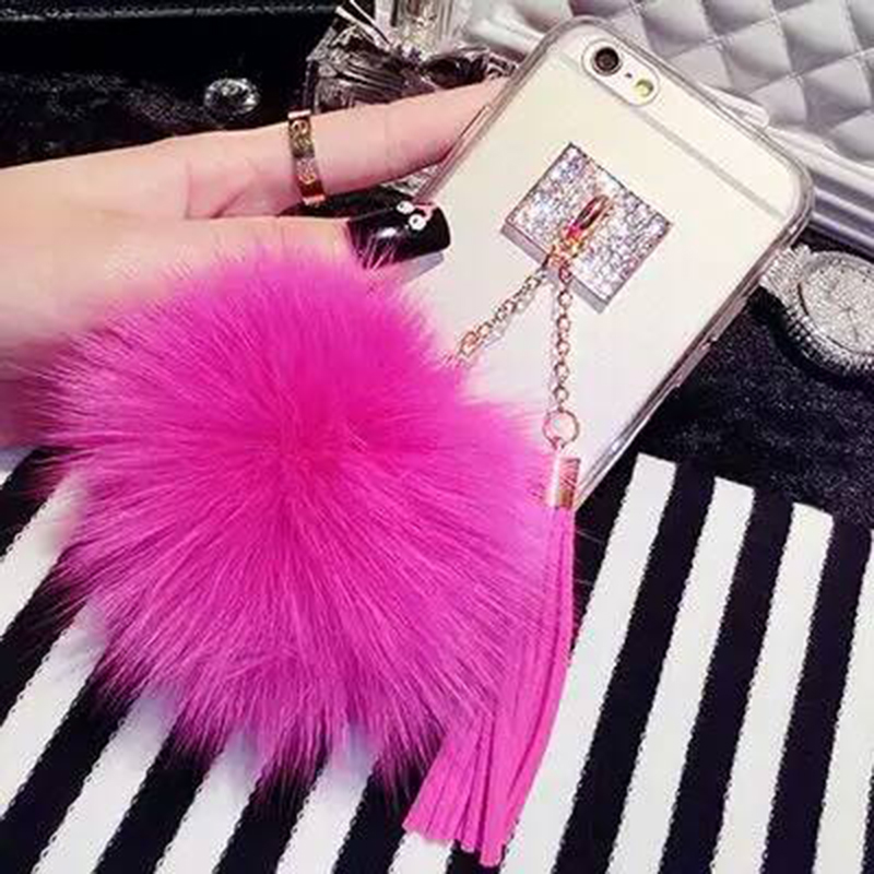 Acrylic Drill Pasted Hairball Tassel Cell Phone Case Back Cover for iphone 7 6s Plus 5s Images |